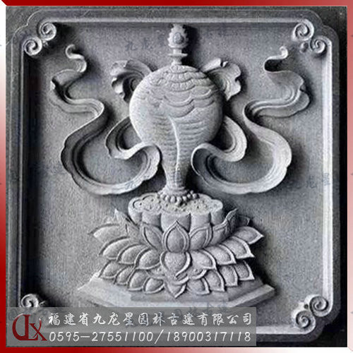 象征財運和吉祥如意,代表財富匯聚和長壽。瓶內通常裝甘露和無價珍寶,瓶口插有孔雀翎或如意樹,即象征著吉祥、清凈和財運,又象征著俱寶無漏、福智圓滿、永生不死。寶瓶更是密宗修法灌頂時的必備法器之一,象征佛之善法的寶庫,能滿足眾生的一切愿望。寶瓶象征佛的頸,寶瓶中充滿甘露,代表佛不斷說法利益眾生。