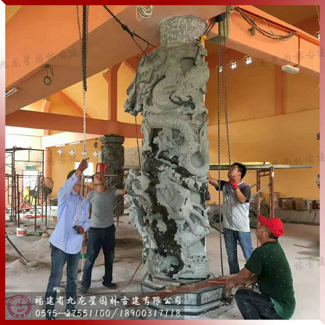 寺廟青石龍柱安裝圖/馬來西亞廟宇工程案例