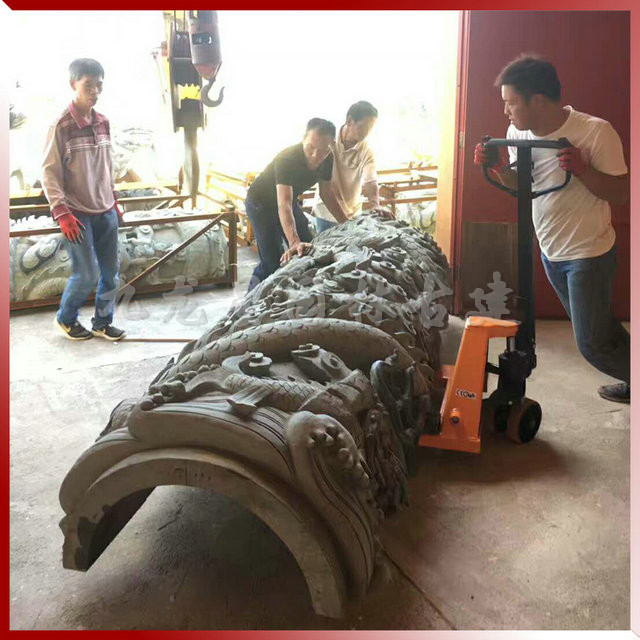 九龍星園林古建寺廟青石龍柱安裝現場