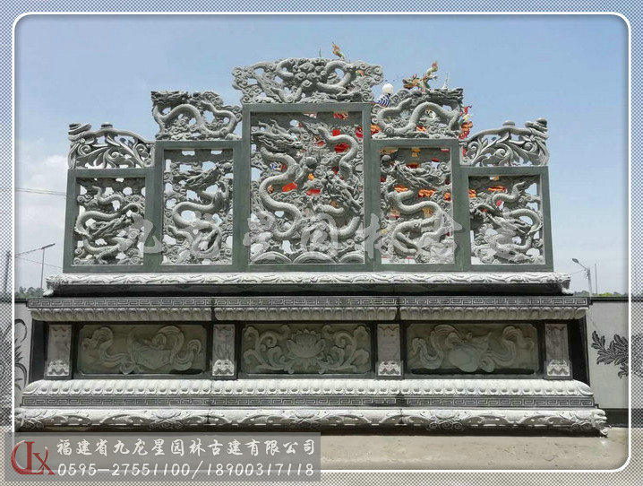 青石石雕屏風雙面雕龍安裝
