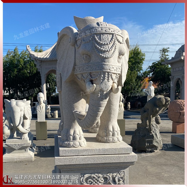 雕刻大象的石雕 馱元寶石雕大象圖片 造型華麗